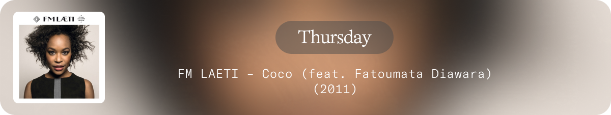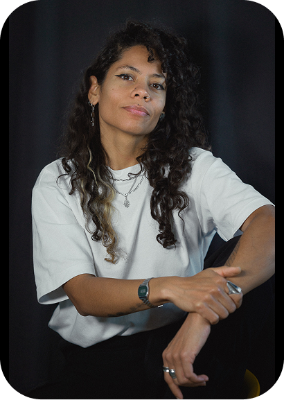 Emilia’s philosophical and political vision aligns closely with the emotional resonance she finds in music. She explains how certain songs have accompanied her recently, reflecting her experiences and connecting her to both joy and memory. “Kongo” by Kolinga feat. Gael Faye moves her with its melody and lyrics while “Palestine” by M.A.P Les bronzés font du ch’ti channels anger that feels necessary and grounding. “Chez moi” by Casey connects Emilia to Martinique, her island, bringing a sense of home and belonging that resonates deeply with her life and work.