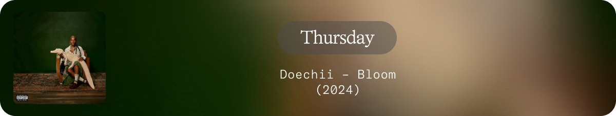 But before you go, the editors have shared a mini playlist of their current track crushes with us. Starting off with London-based harpist and composer Nala Sinephro and her jazz-, ambient- and synth-infused sound that feels entirely her own. Other highlights include “Jesus Freak Lighter” by Blood Orange, a song that feels like floating on a synthetic cloud, perfect for romanticizing U-Bahn rides; “Softly” by Clairo, a nostalgic anthem tied to one editor’s first queer relationship and coming out in 2019 or Doechii’s “Bloom,” with lyrics that speak directly to overthinkers everywhere.