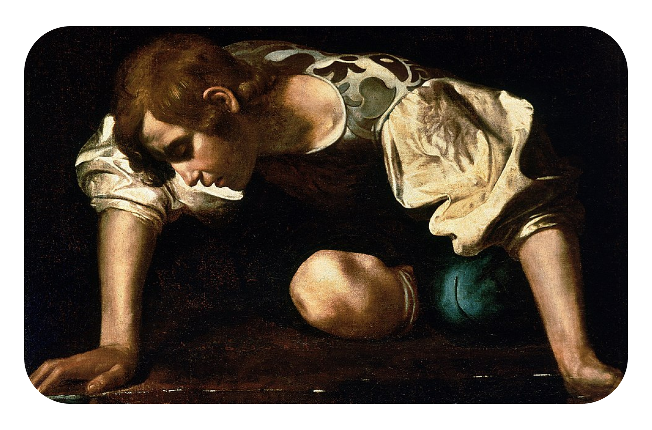In Greek mythology—and later in Ovid’s Metamorphoses—Narcissus is described as a young man of exceptional beauty who responds with cold indifference to every declaration of love. He roundly dismisses or sneers at all who admire him until the gods punish him by making him fall in love with someone he can never possess. Unaware of the trick, Narcissus becomes captivated by his own reflection in a pool of water. Enchanted by the beauty before his eyes, he loses all sense of the world around him. He remains by the water’s edge, unable to tear himself away, until hunger, despair and longing consume him. At the place where he dies, a flower grows—the narcissus, still bearing his name today.